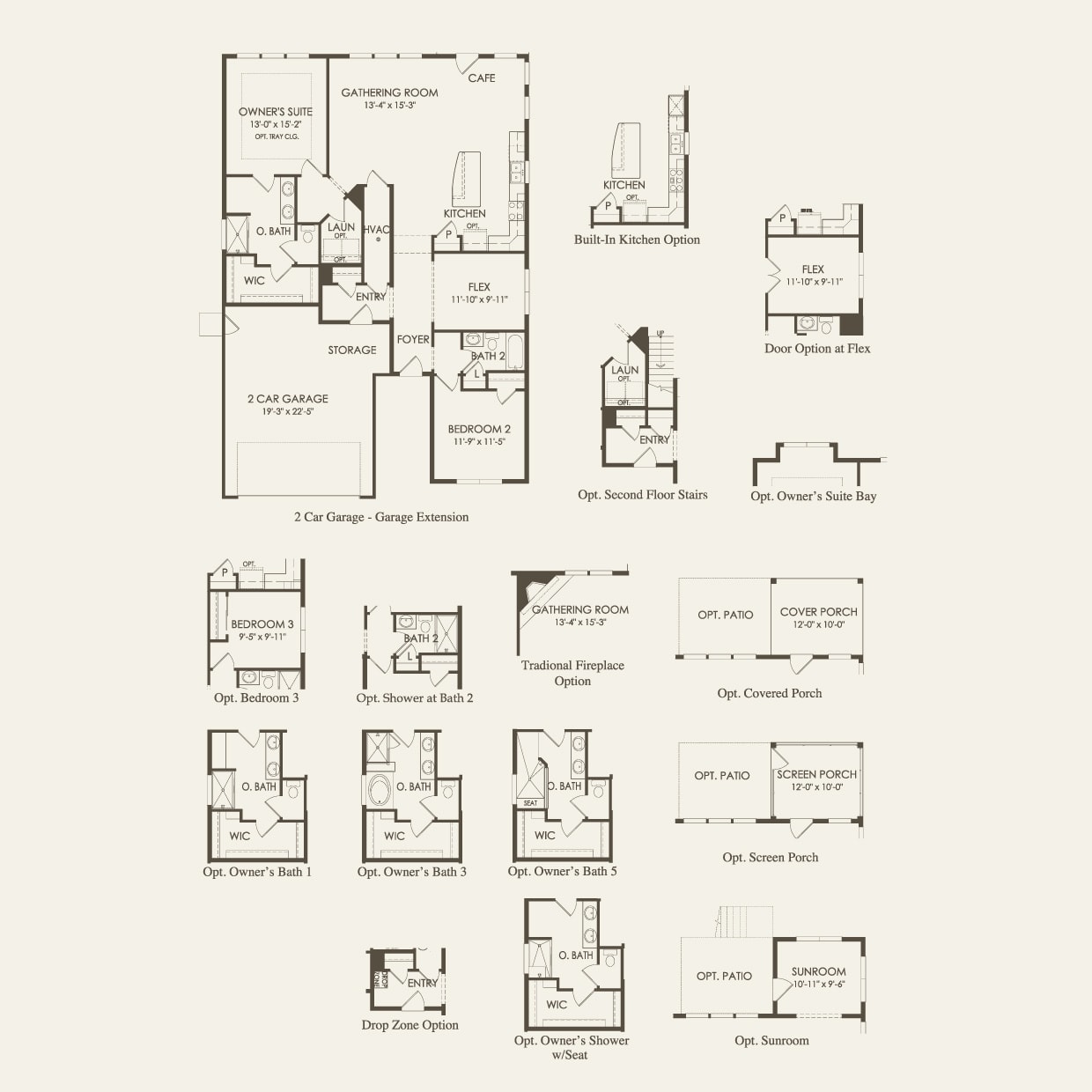 - Those who value flow and function spark to the open layout of the single-story Abbeyville. A well-integrated kitchen, dining area, and gathering room – filled with natural light – support entertaining and everyday living.