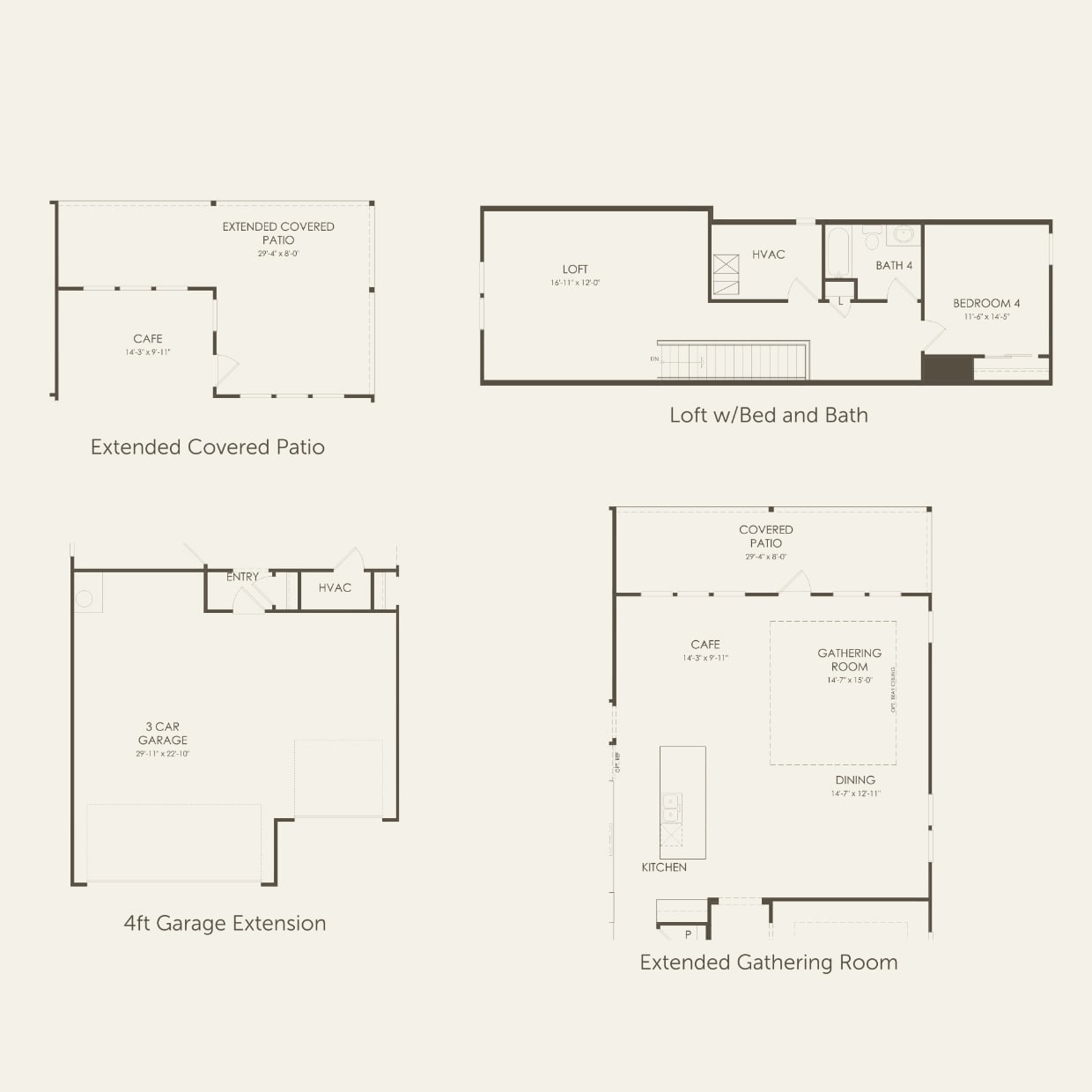 - The Renown’s open kitchen overlooks the gathering room and café. Storage space is maximized throughout the home, with walk-in closets in every bedroom, a walk-in pantry in the kitchen, and a 3 car garage.
