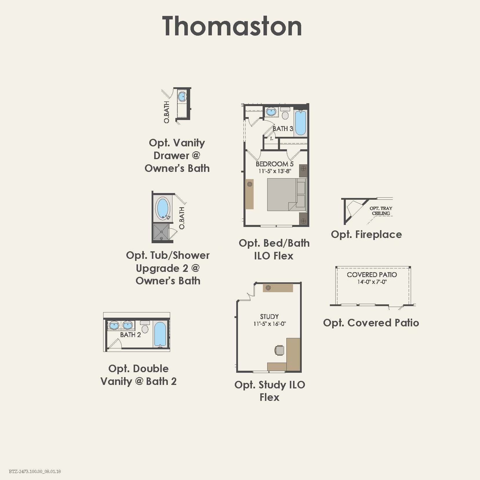 - The Thomaston captures open-concept living with its generous gathering room and connected kitchen and café. A flexible living space and owner’s suite completes the expansive downstairs area while the upstairs offers 3 bedrooms and a loft space.