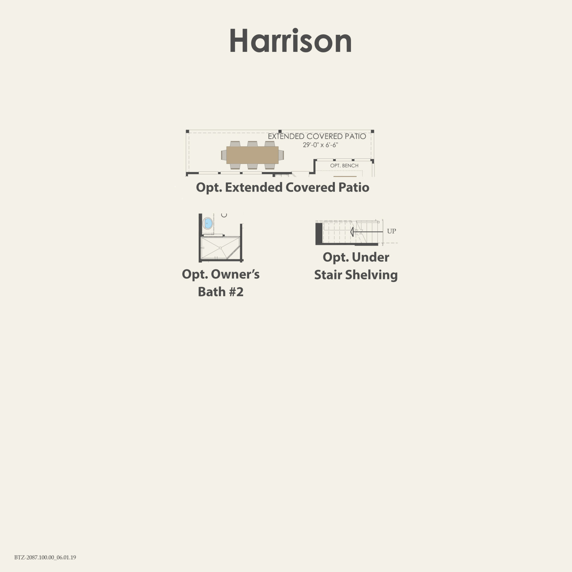 - The two-story ceilings in the gathering room of the Harrison are a signature open concept feature. A first floor owner’s suite features a large walk-in closet. The flexible living space on the second floor is perfect for the whole family.